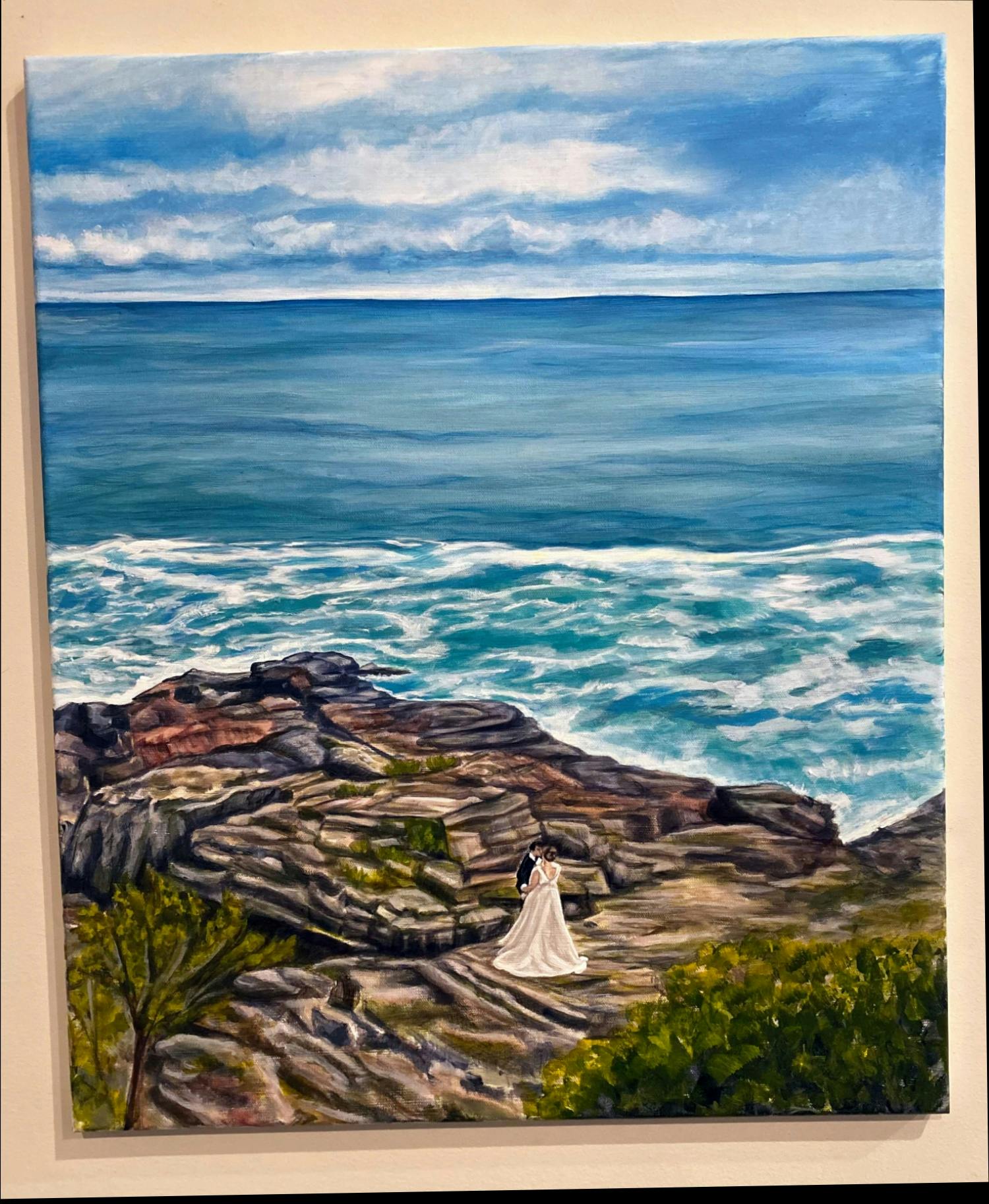 5/5 stars - This piece was exquisite and was the showstopper at the bridal shower for our Nephew. Details were captured better than I could have imagined. Our artist created this piece with a watercolor based oil paint as she had the common sense to take into account that traditional oil paint take months to fully dry. The previous painting I had ordered from a different artist used traditional oil paint and had already started to bleed out by the time it was delivered to my home. I will NEVER use anyone else for any future pieces.- Danielle from Cleveland